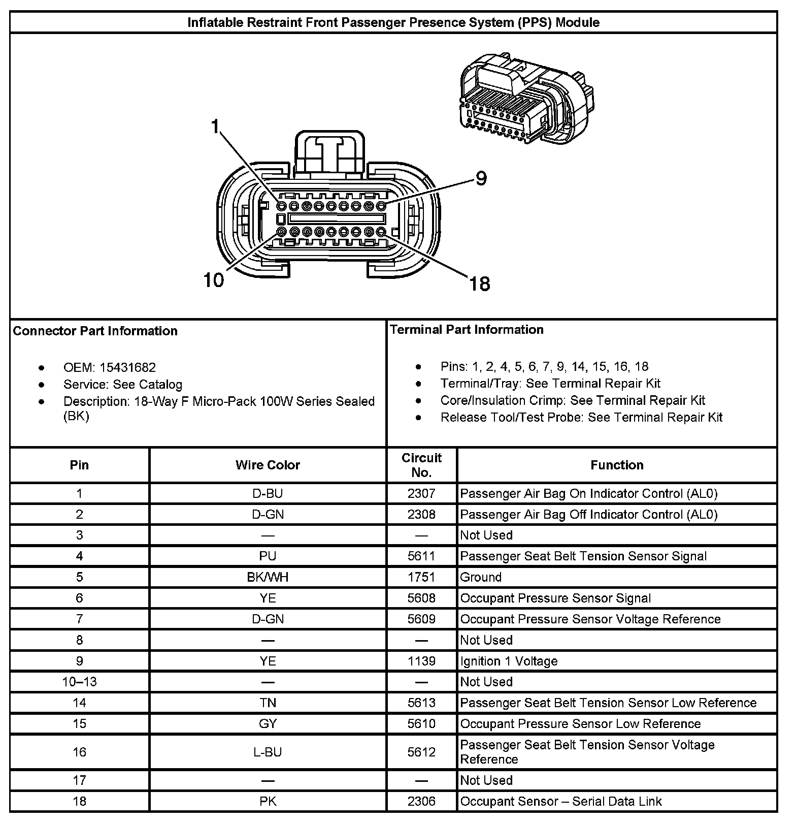 Inflatable Restraint Front Passenger Presence System (PPS) Module:
