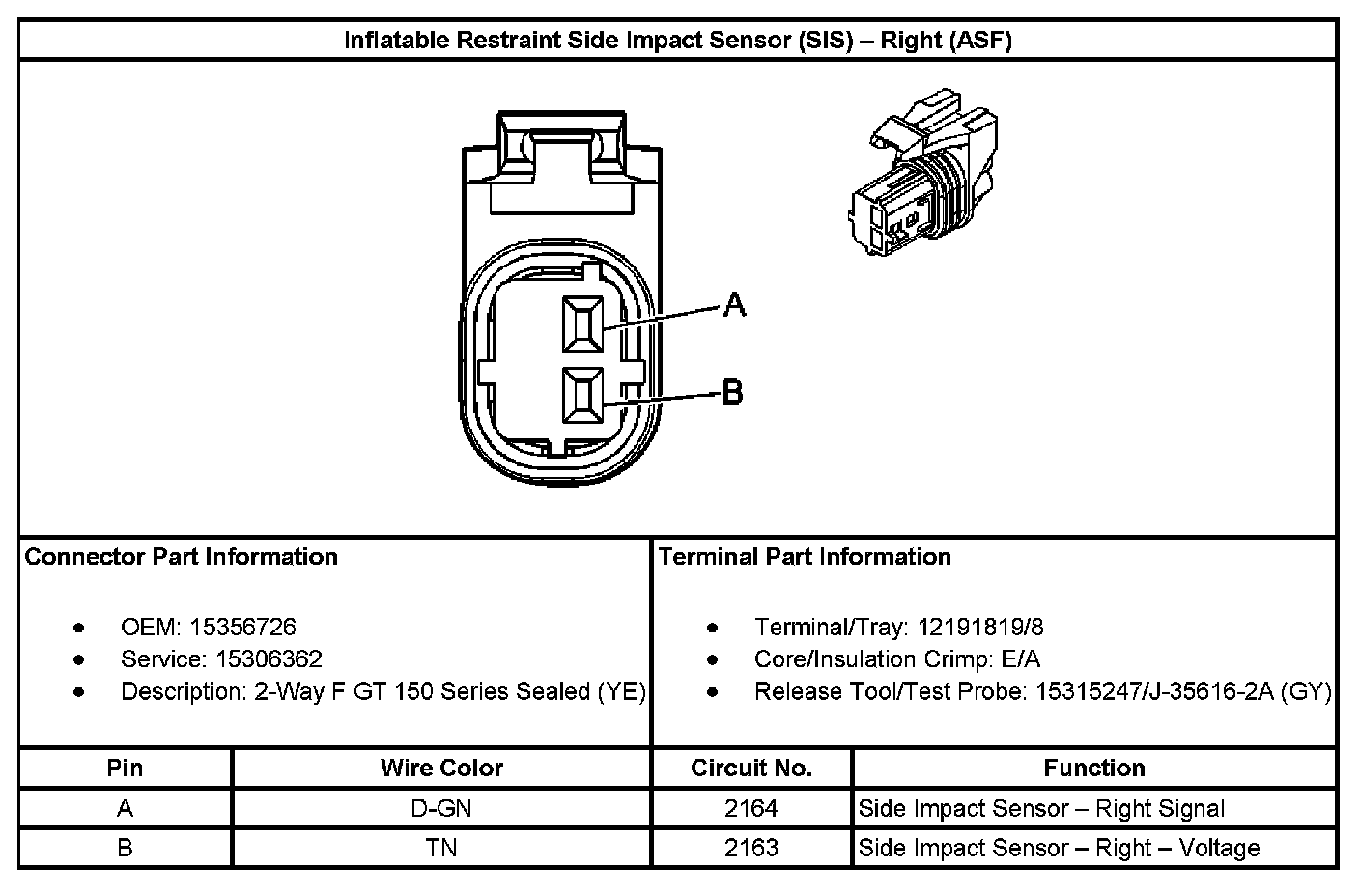 Inflatable Restraint Side Impact Sensor (SIS) - Right (With RPO Code ASF):