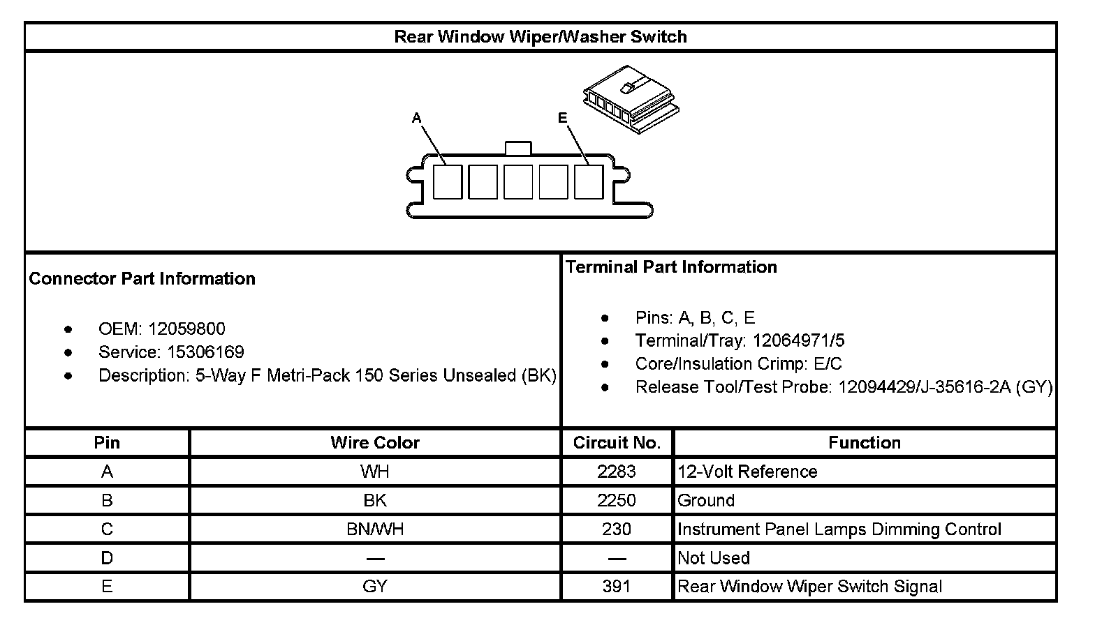 Rear Window Wiper/Washer Switch:
