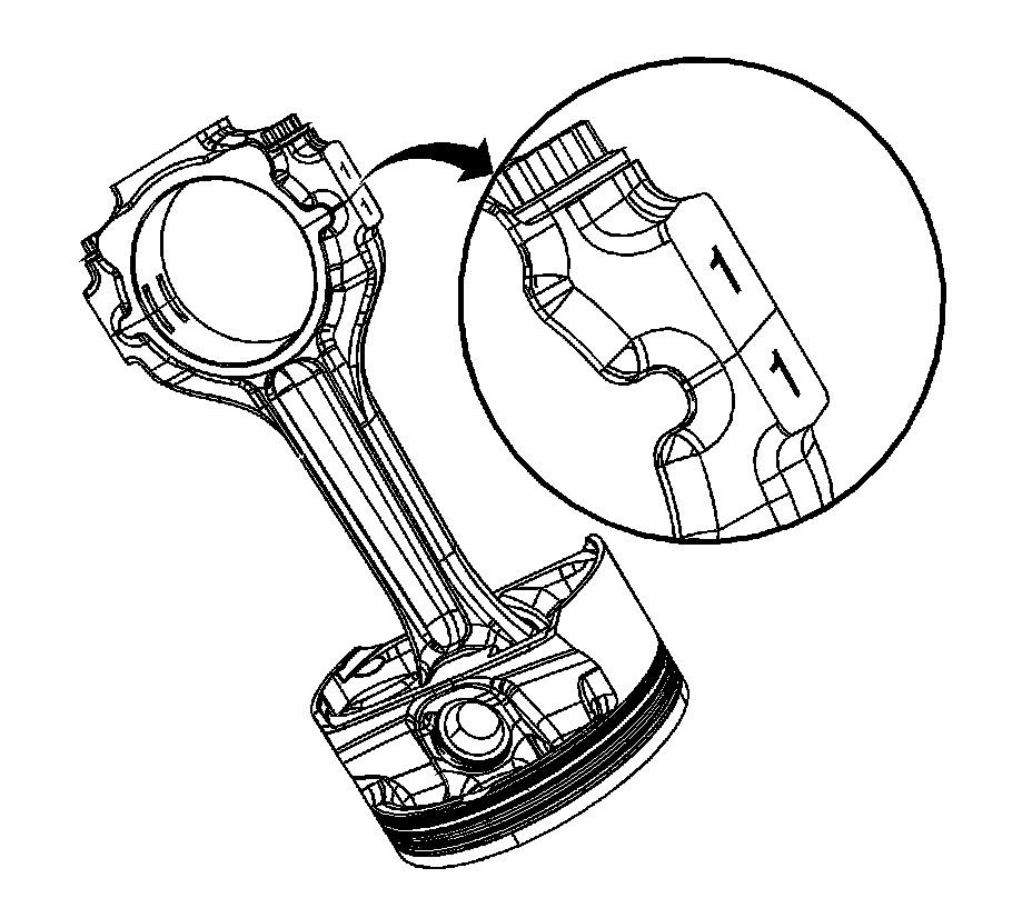 ^ A stamping mark on the side of the connecting rod, at the crankshaft journal, may affect component geometry.