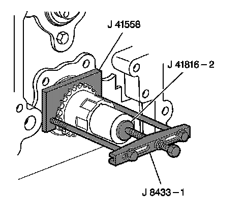 5. Use J 8433-1, J 41816-2 and J 41558 in order to remove the crankshaft sprocket.