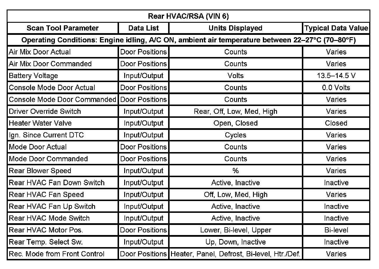 Rear HVAC/RSA (VIN 6):