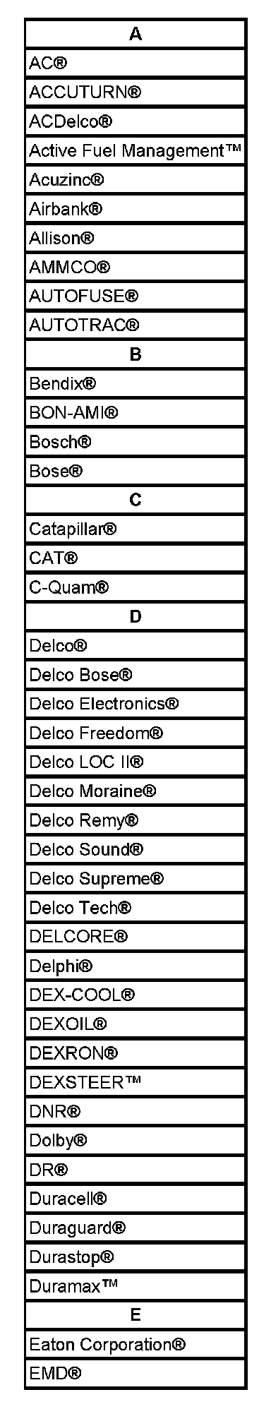Listed below are Registered Trademarks or Non-Registered Trademarks which may appear.