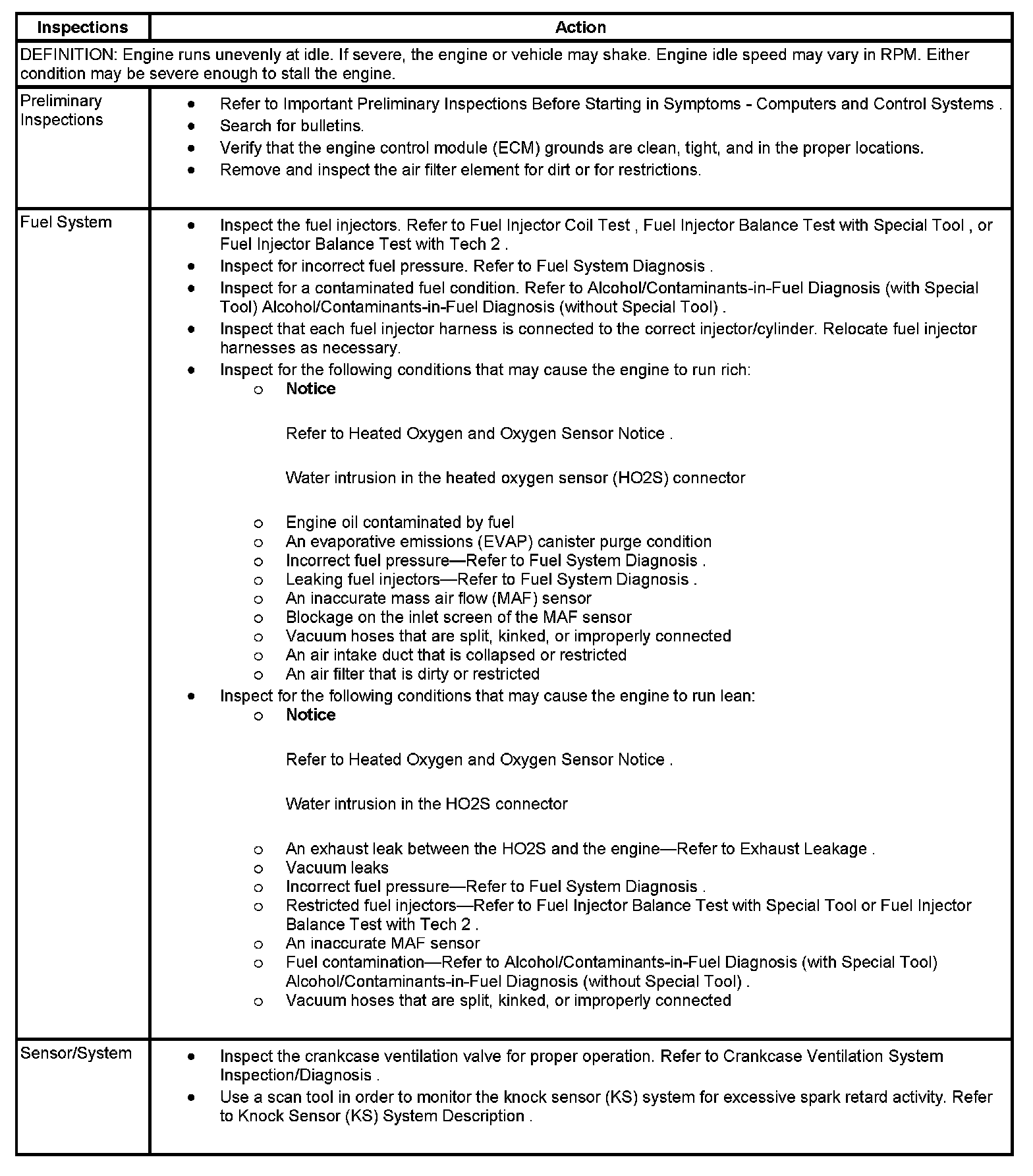 Rough, Unstable, or Incorrect Idle, Stalling