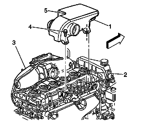 5. Remove the 2 resonator to engine bolts (4) from the air cleaner outlet resonator (5).