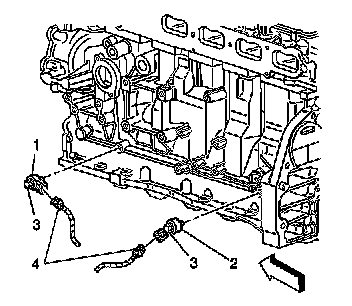3. Remove the knock sensor retaining bolt (3).