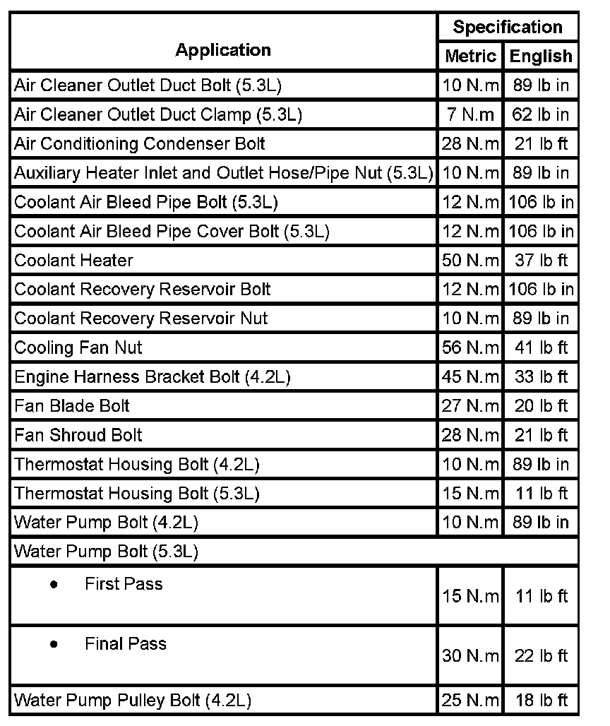 Fastener Tightening Specifications: