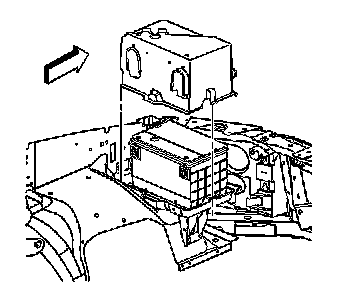8. Remove the battery hold down nut (3), retainer (1), and washer.