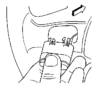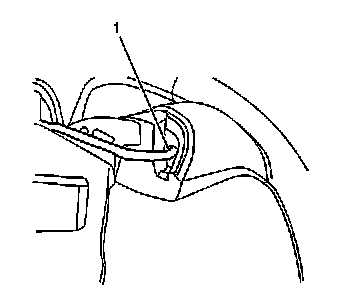 4. Position a blunt ended tool into the wire harness cavity (1) and apply moderate pressure in order to partially remove the steering wheel control switch from the steering wheel.