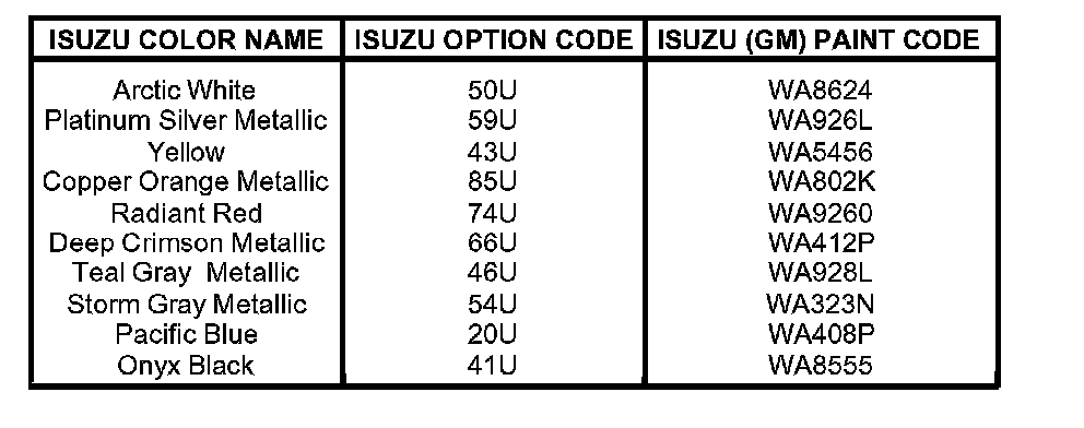 2007 Isuzu Vehicle Paint Code Information