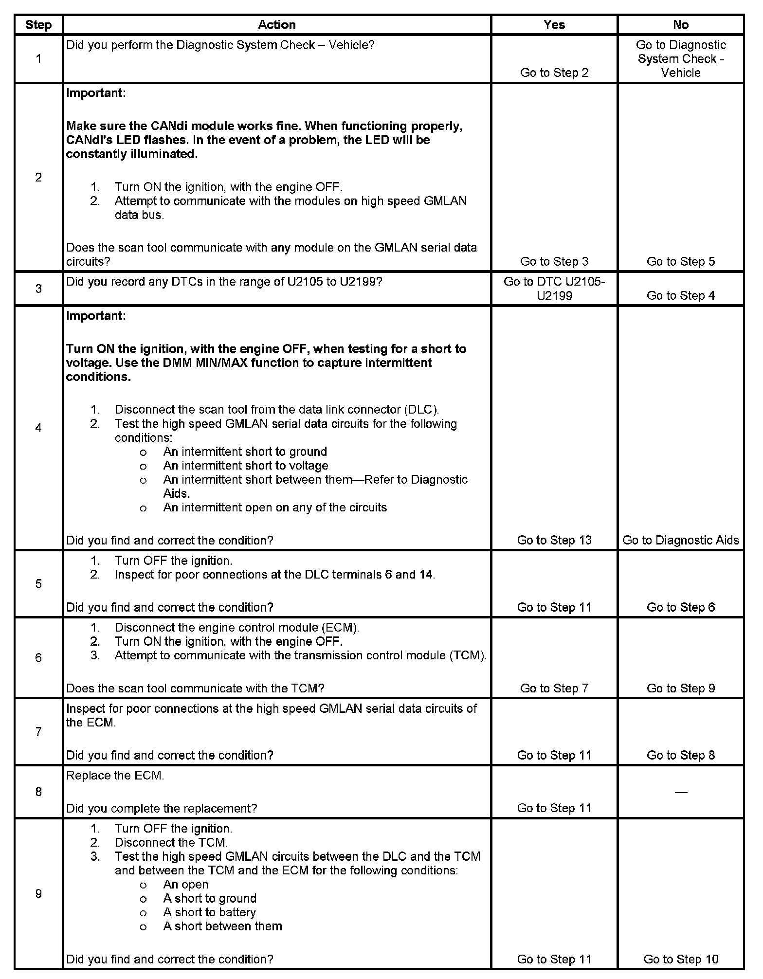 - A module internal malfunction that causes a short to voltage or ground on the high speed GMLAN circuits