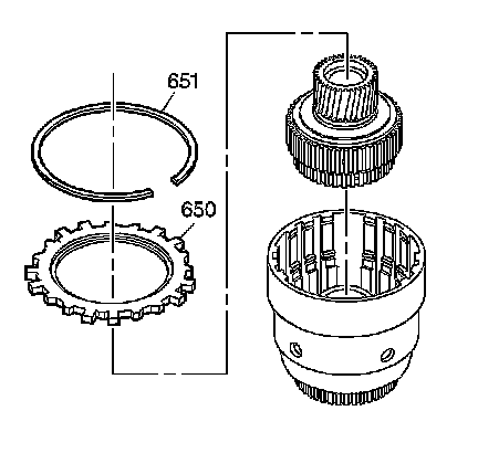 4. Remove the 3rd and 4th clutch backing plate retainer ring (656).