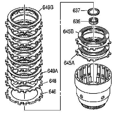 10. Remove all forward clutch plates (646, 648, 649A, 649B).