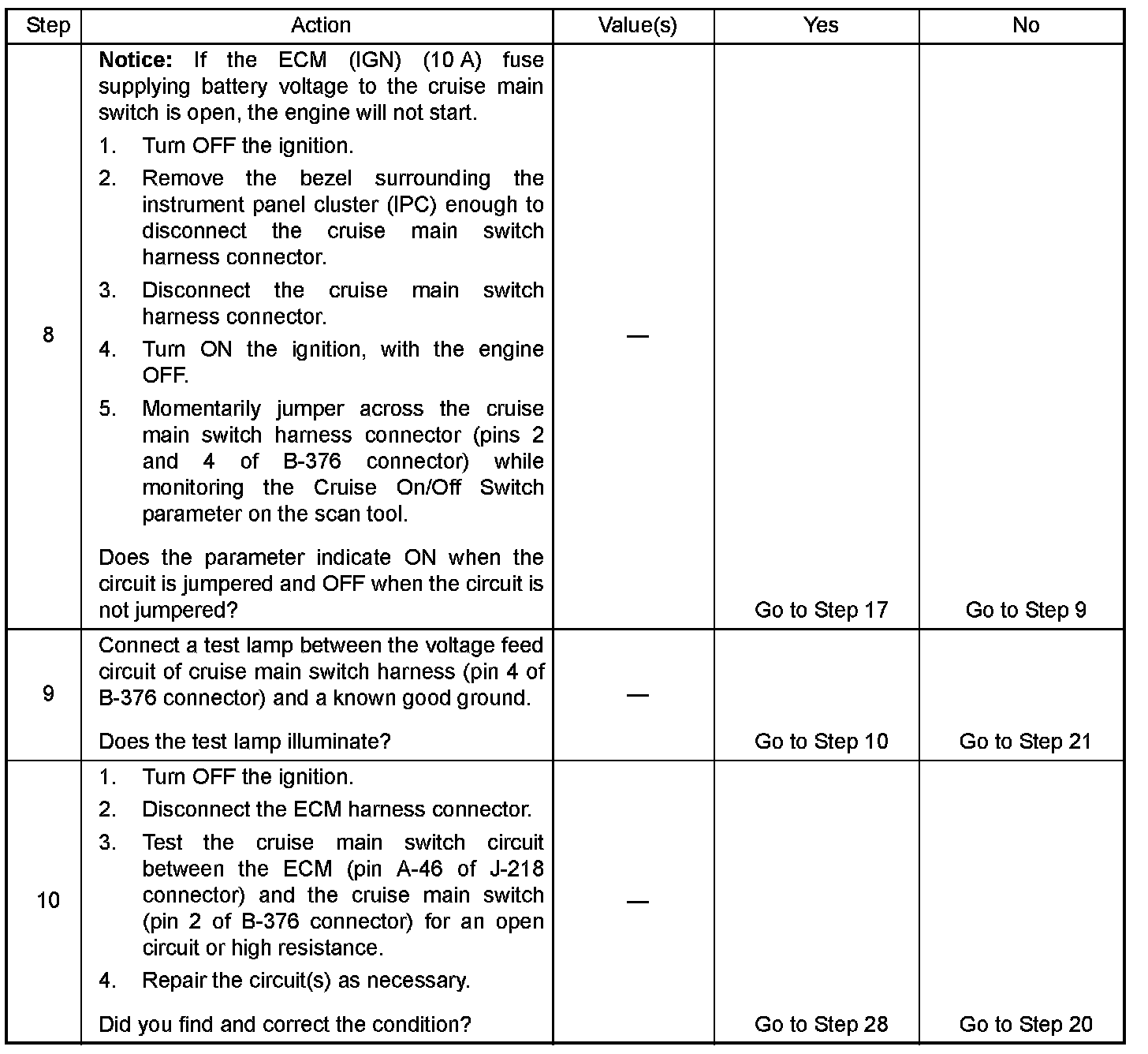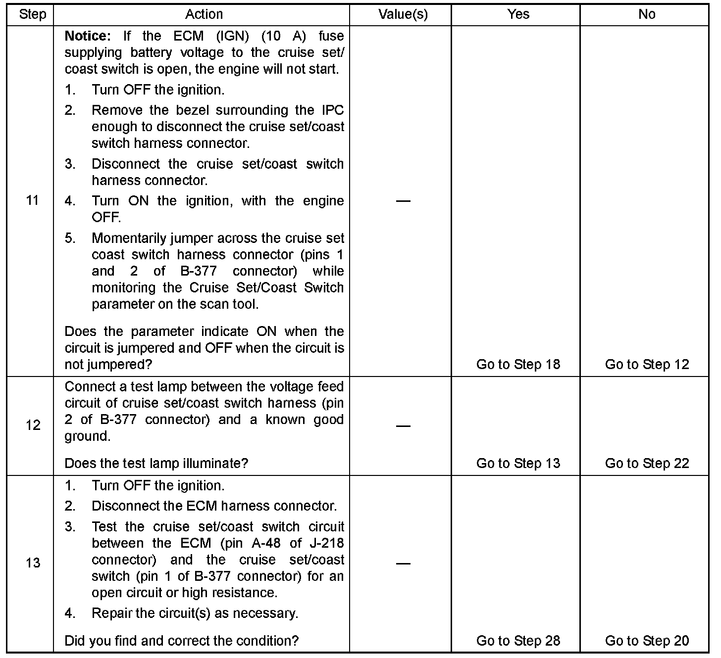 Refer to the Cruise Control Option Programming for ECM programming. Service and Repair