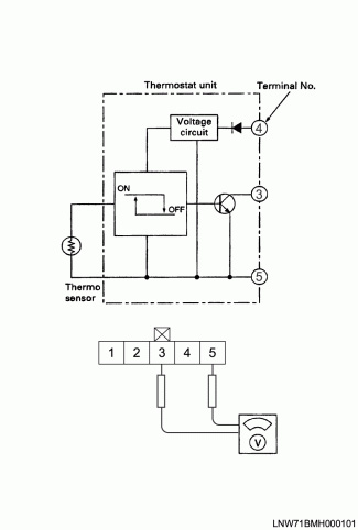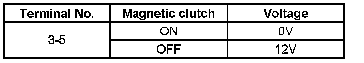 3. While the magnetic clutch is turning "ON" and "OFF", measure the voltage between chassis side connector terminal No.3 No.5.