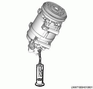 Supply 90cc (3.04 US fl oz) of oil to the compressor and install it onto the vehicle.
