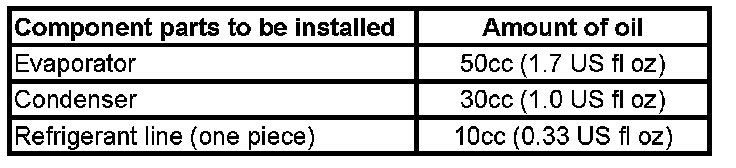 When replacing system component parts, supply the following amount of oil to the component parts to be installed.