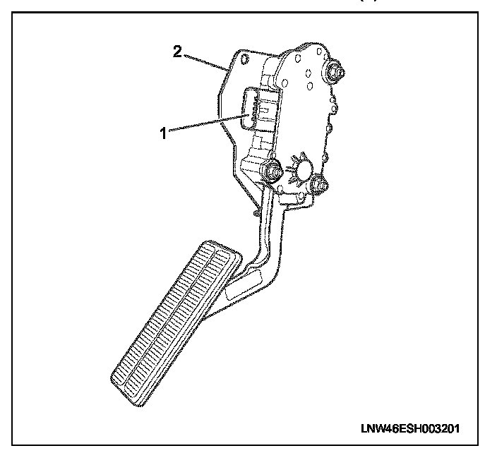 4. Remove the accelerator pedal assembly from accelerator pedal bracket (2).