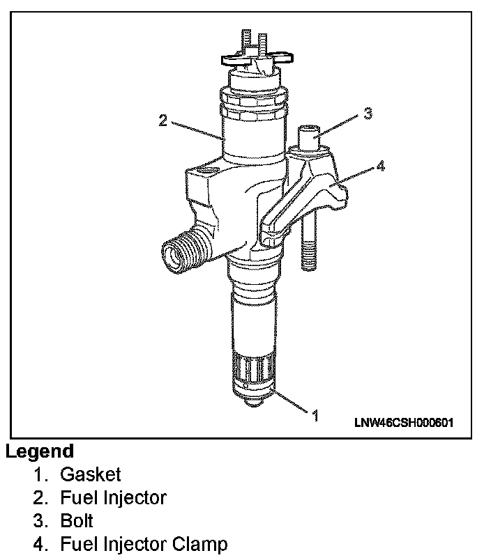 1. Install a new gasket and O-ring to each of the fuel injector clamps. Refer to the illustration.