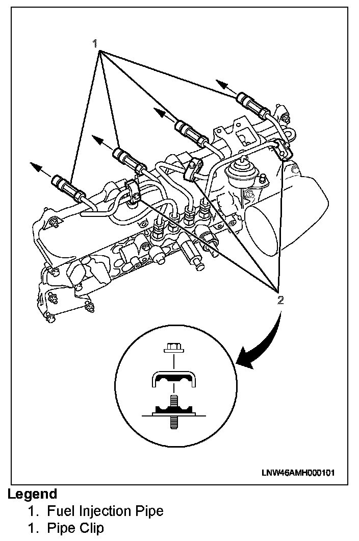 6. Install the fuel injector pipes to the position shown in the illustration.