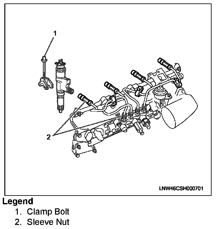 11. Install the nozzle leak off pipes together with the new gaskets. Tighten the pipes to the specified torque.