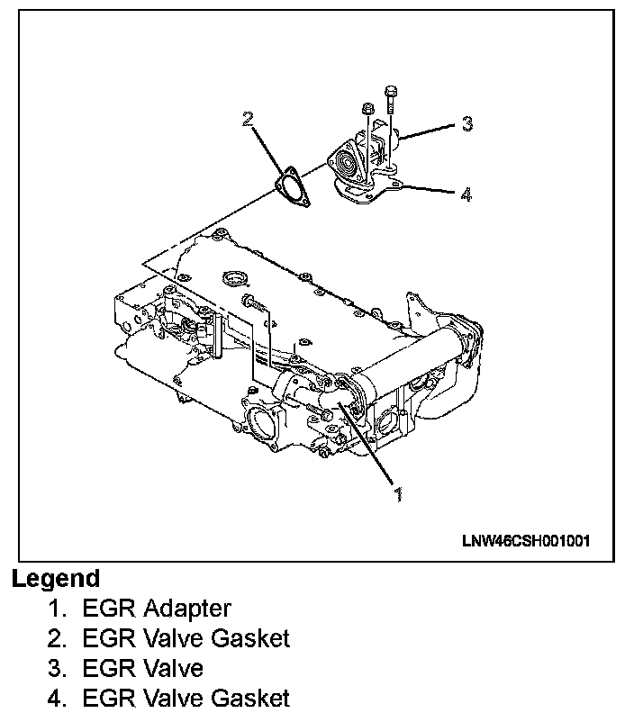 19. Install the gasket to the EGR adapter and tighten the bolts to the specified torque.