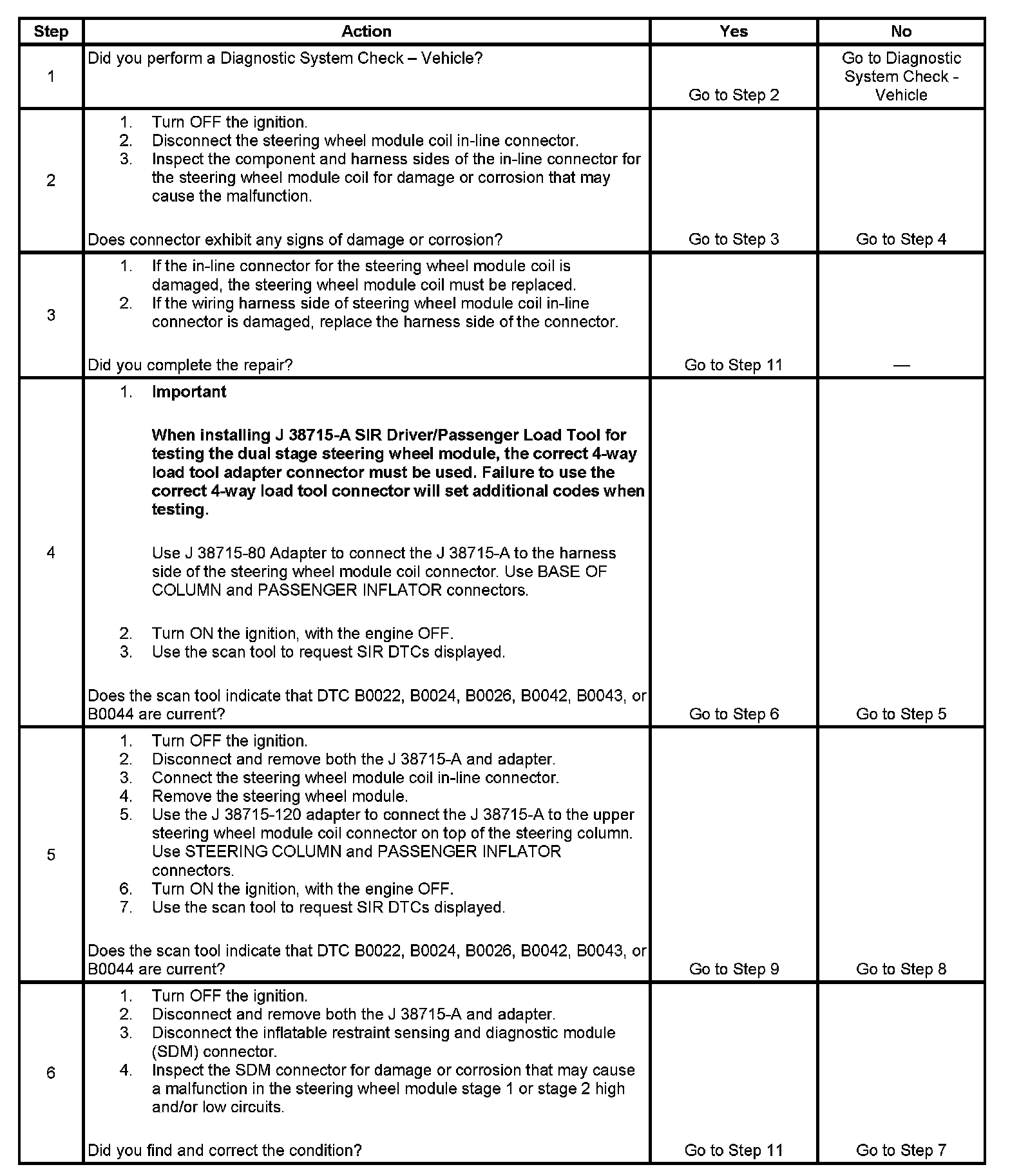 - DTC B0022 (stage 1) or B0042 (stage 2) will set when the steering wheel module deployment loop resistance is less than 1.3 ohms for 500 milliseconds.