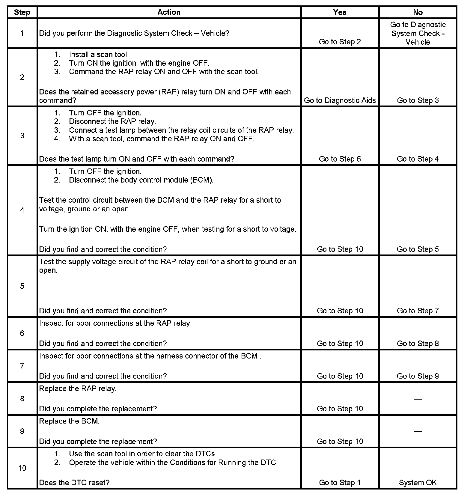 - The BCM detects a short to voltage in the RAP relay control circuit when the BCM is trying to energize the RAP relay.