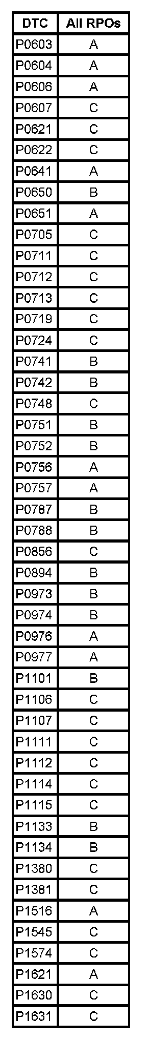 DTC's P0603 - P1631: