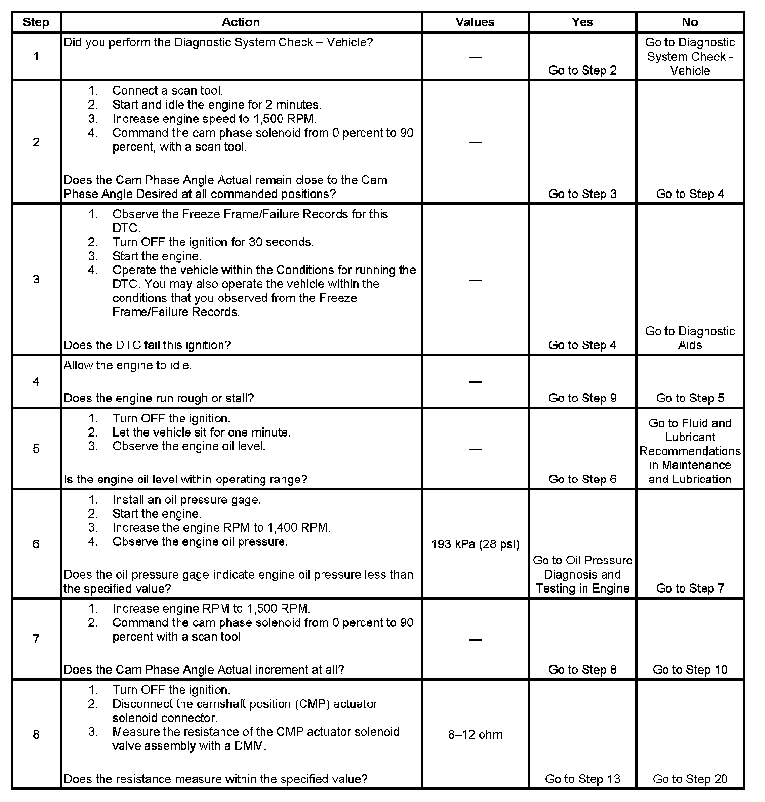 - If this DTC is set along with any crankshaft position (CKP) or camshaft position (CMP) sensor DTCs, then both the CKP and CMP sensor DTCs should be diagnosed prior to performing this diagnostic. The PCM uses both inputs to determine the actual camshaft position.