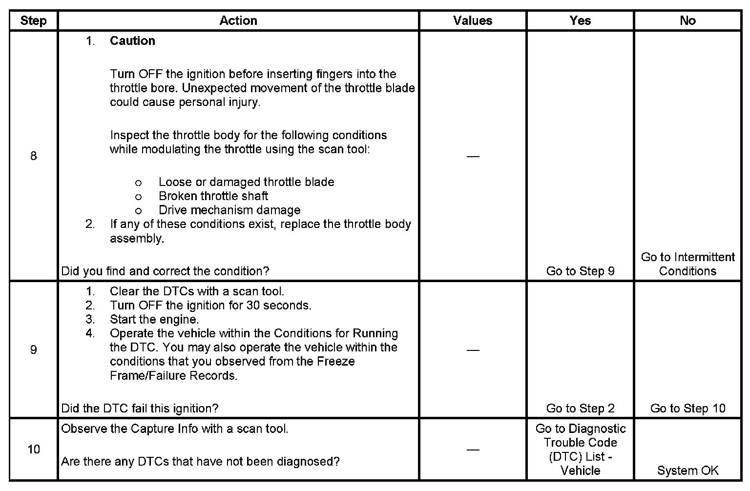 9. When the PCM detects a condition within the throttle actuator control (TAC) system, other DTCs may set due to the many redundant tests run continuously on this system. Locating and repairing one individual condition may correct more than one DTC. Keep this in mind when reviewing captured DTC info.