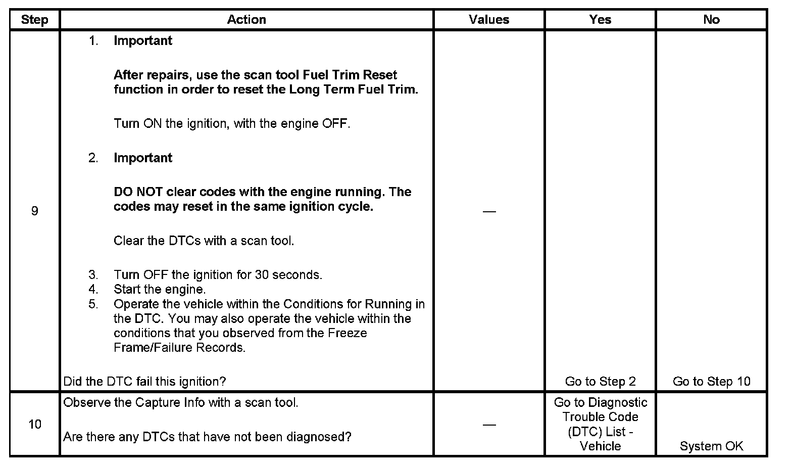 - A current DTC, Last Test Failed, clears when the diagnostic runs and passes.