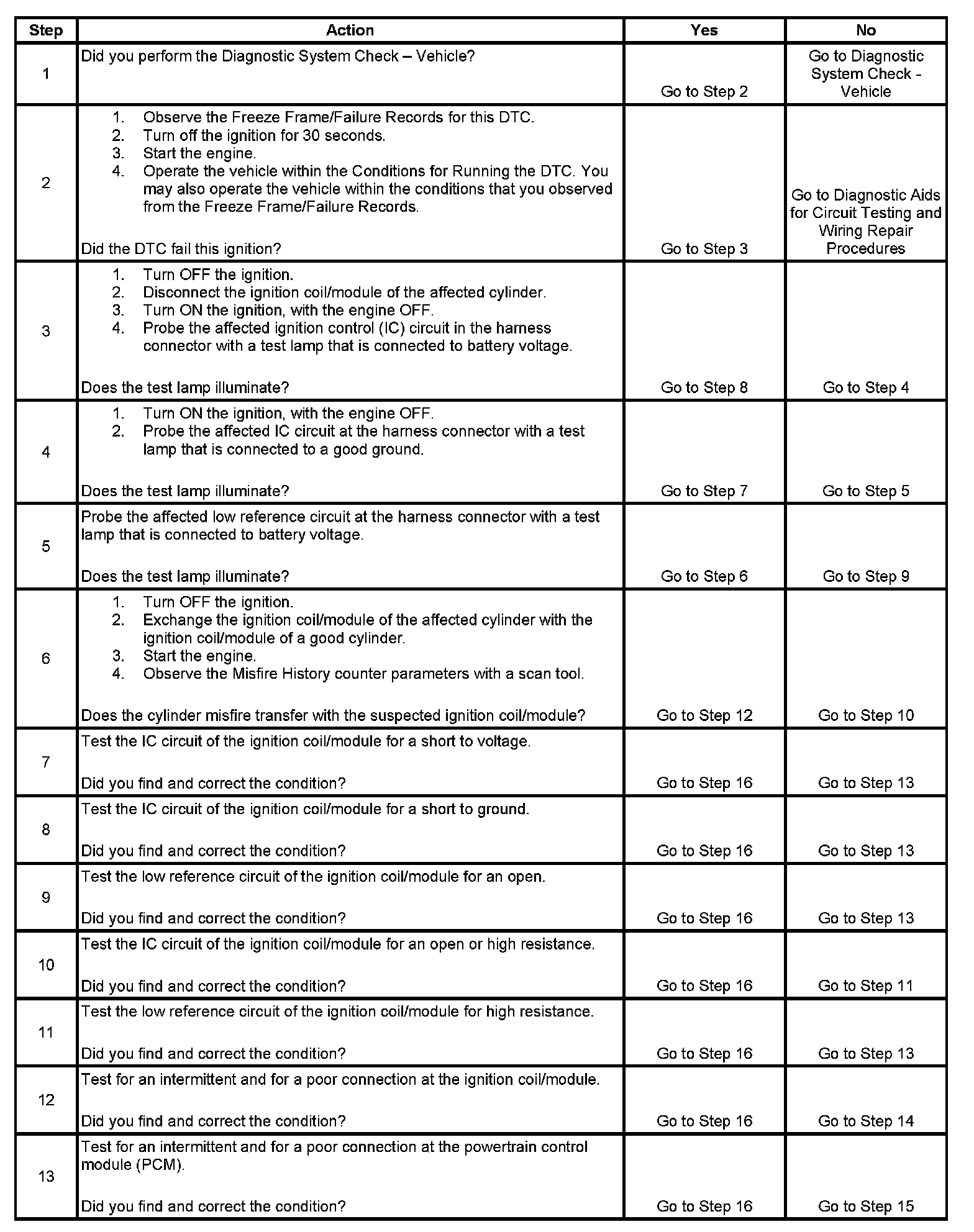 If the PCM detects an improper voltage level on the IC circuit of the ignition coil/module, it will set the corresponding DTC.