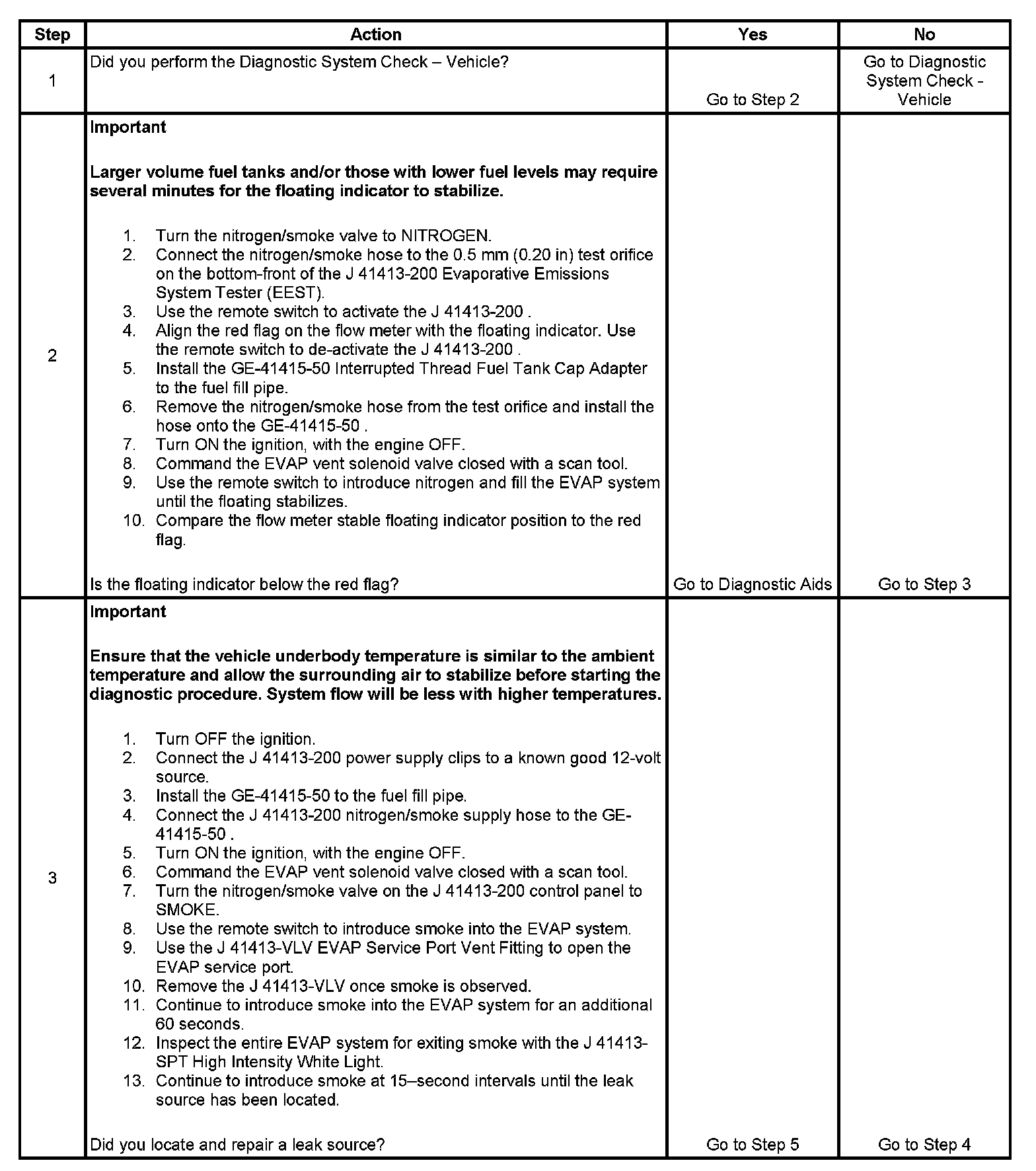 - To help locate intermittent leaks, use the J 41413-200 Evaporative Emissions System Tester (EEST) to introduce smoke into the EVAP system. Move all EVAP components while observing smoke with the J 41413-SPT High Intensity White Light.