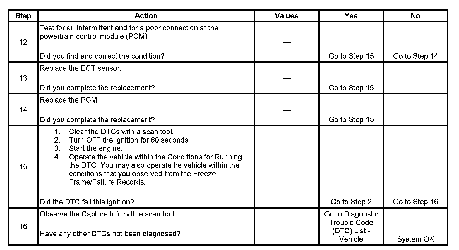 - A current DTC Last Test Failed clears when the diagnostic runs and passes.