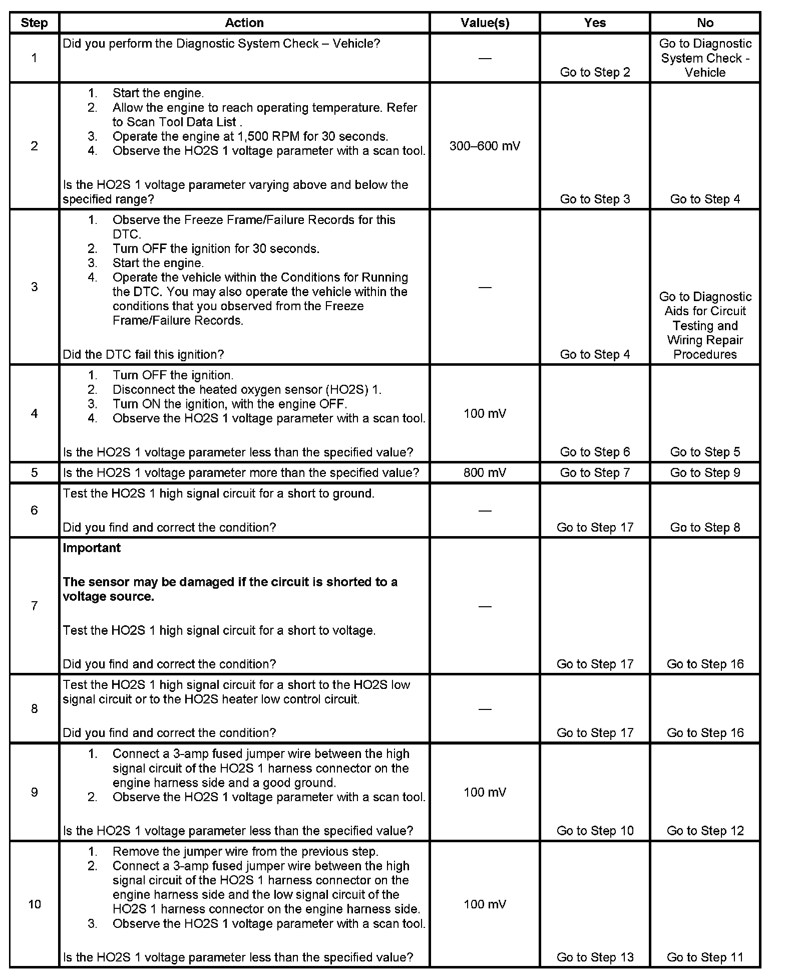 This diagnostic will only run once per ignition cycle. The ECM monitors the rich-to-lean and lean-to-rich transitions. A transition is defined as the HO2S voltage changes from above 600 mV to below 300 mV or from below 300 mV to above 600 mV. If the ECM detects that the transition time ratio is not within a specified range, DTC P1134 will set.