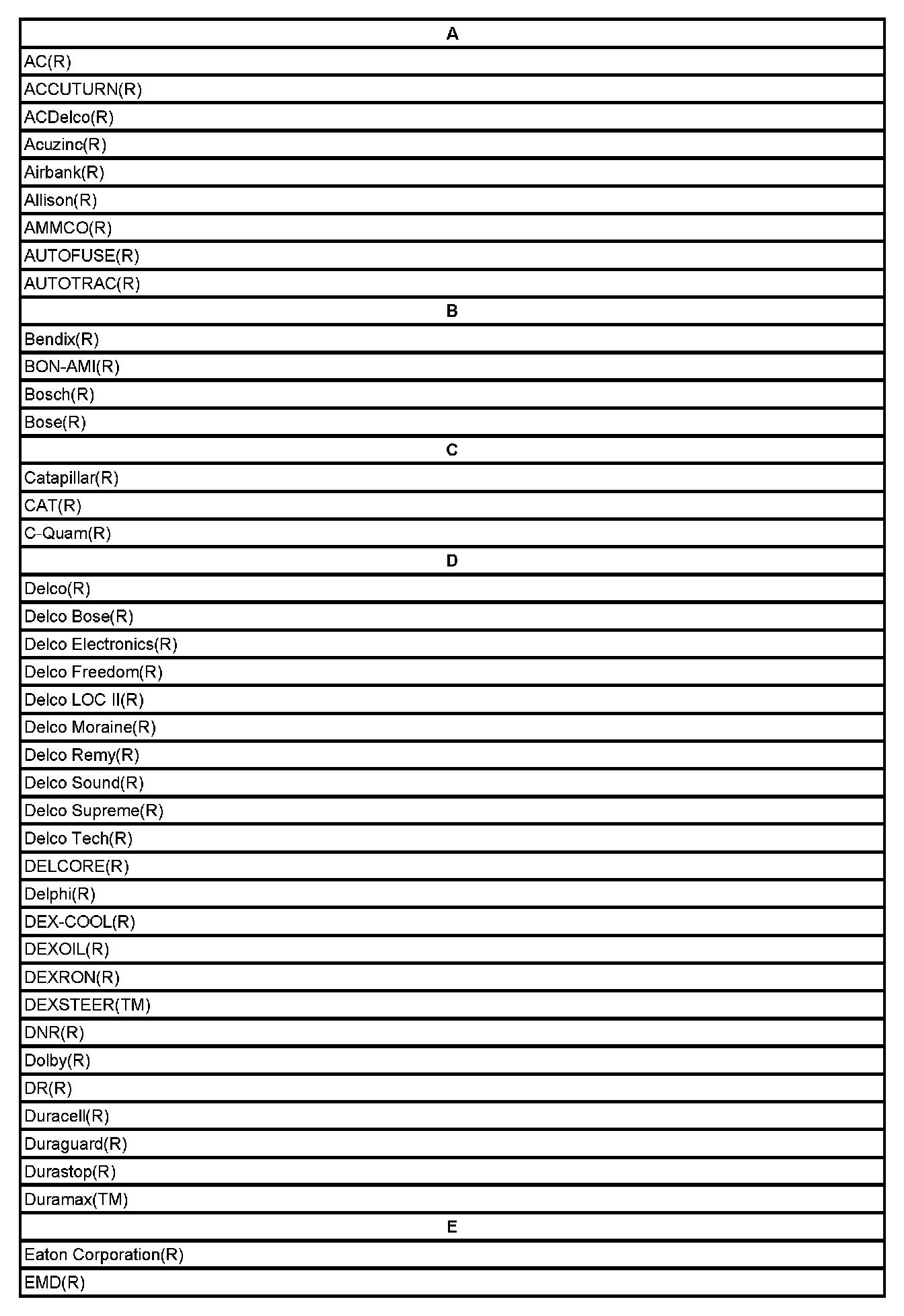 Listed below are Registered Trademarks ((R)) or Non-Registered Trademarks ((TM)) which may appear in this Service Data.