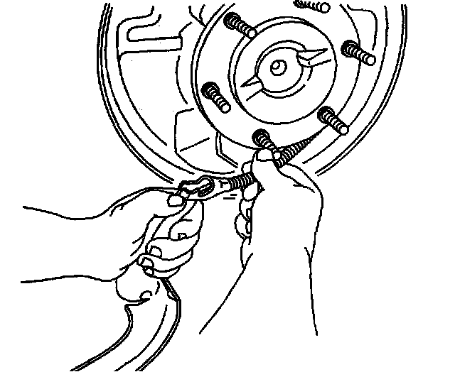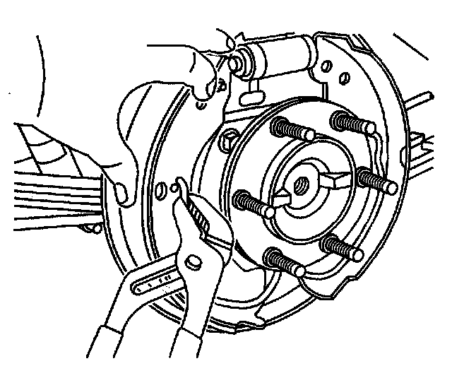 Important Before removing the brake return spring, adjust the brake shoes to the lowest position. This will reduce the tension on the retractor spring.