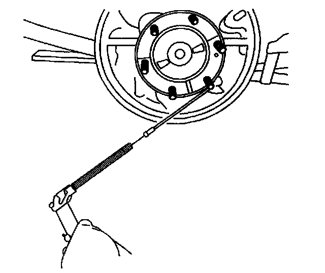 Important When removing the park brake cable from the lever, the park brake return spring will remain attached to the lever. DO NOT remove the return spring from the lever. If the return spring becomes separated from the lever, replace the rear brake shoes. The lever is part of the brake shoe assembly.
