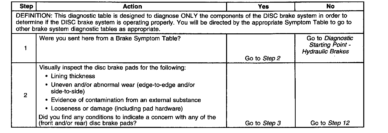 Disc Brake System DiagnosisTest 1-2: