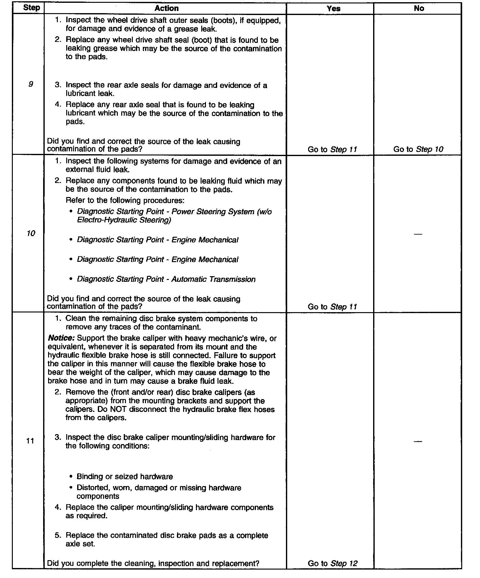 9. Lubricant leaks from non-brake system components may come in contact with and contaminate brake system components.