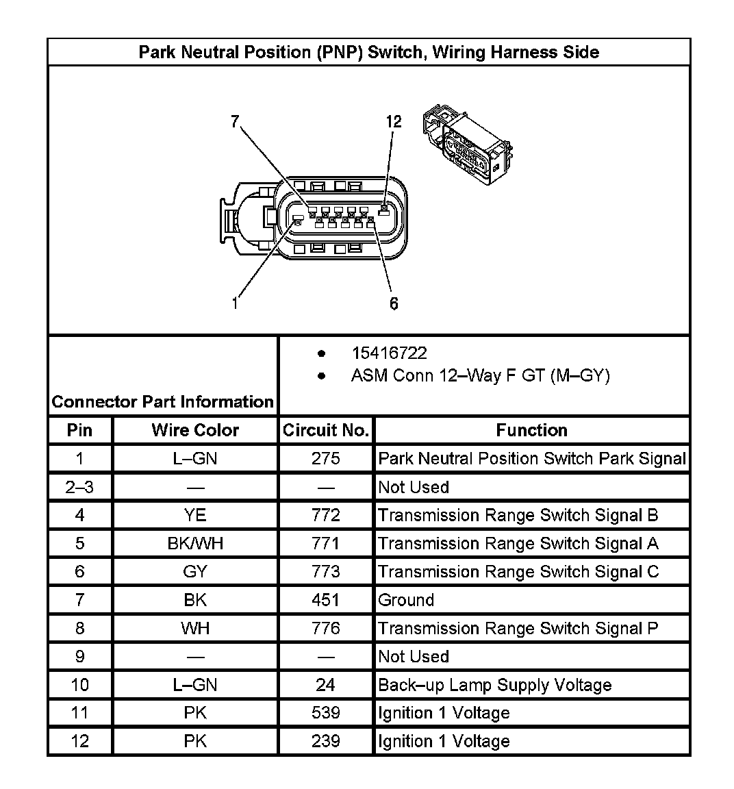 Park Neutral Position (PNP) Switch, Wiring Harness Side: