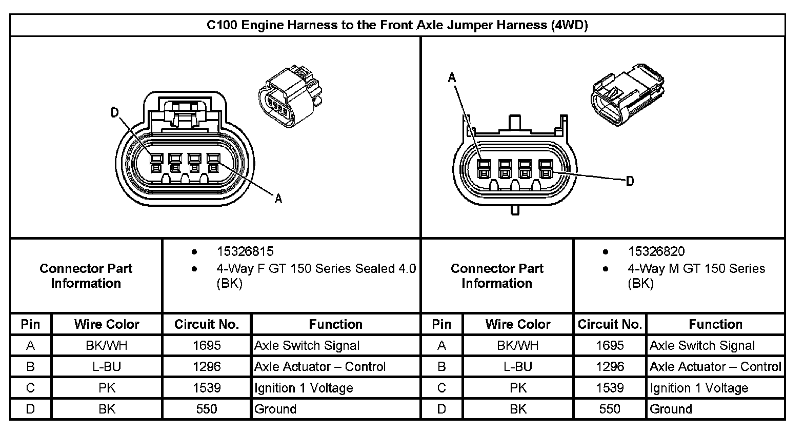 C100 Engine Harness to The Front Axle Jumper Harness (With RPO Code 4WD):
