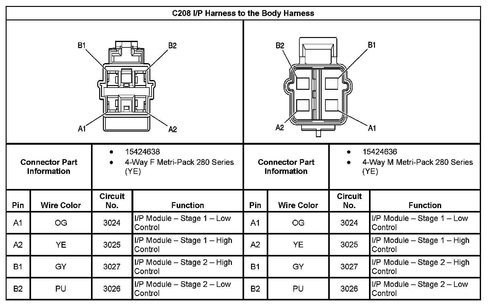 C208 I/P Harness to the Body Harness: