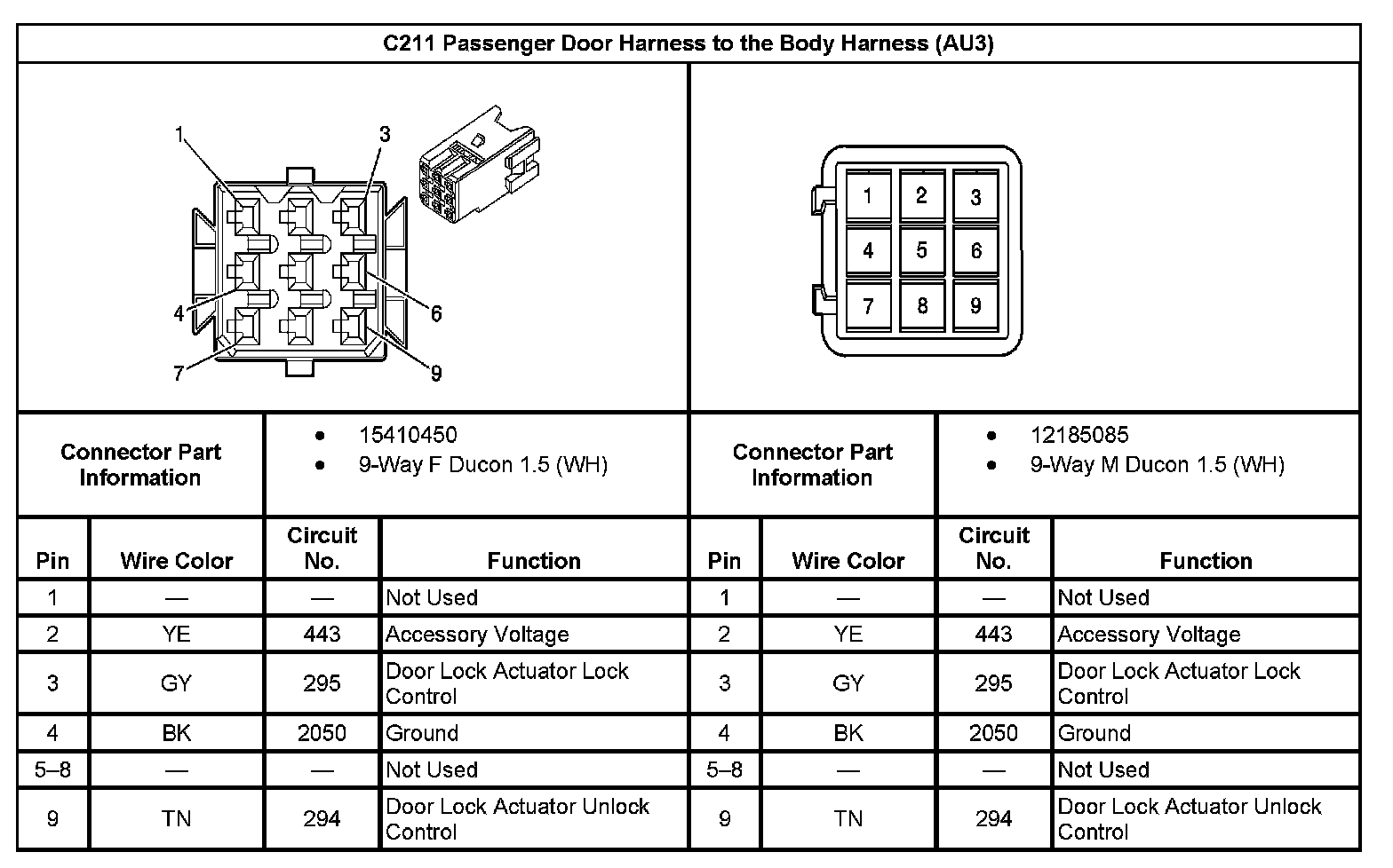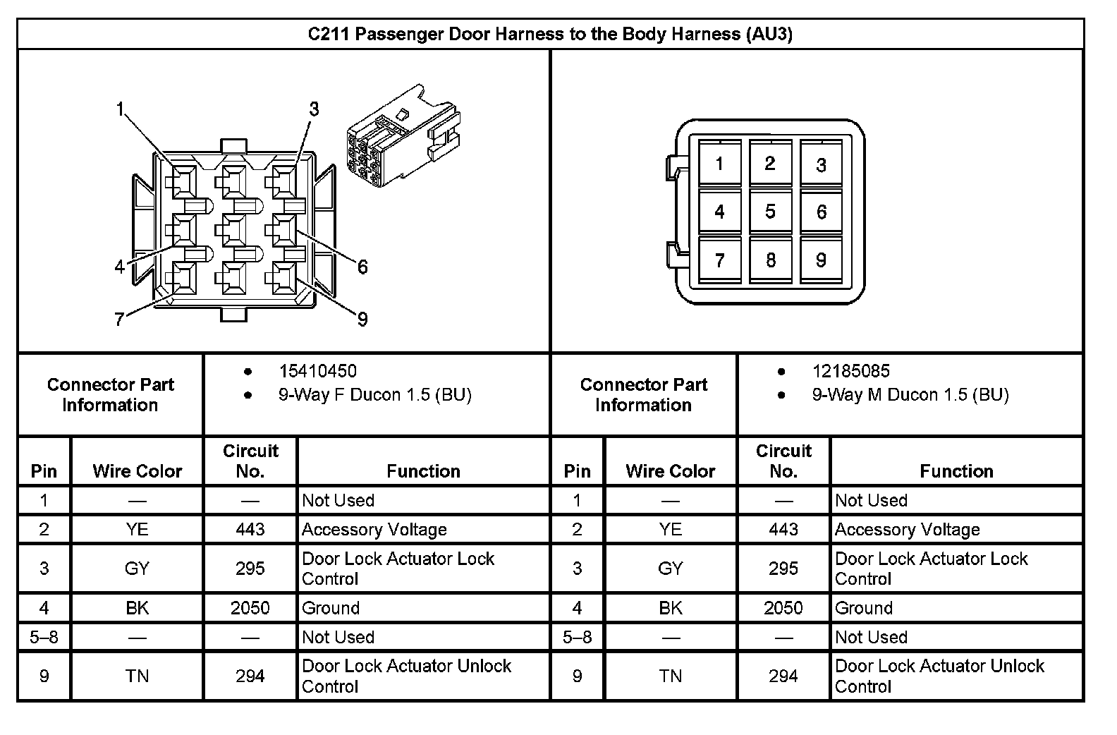 C211 Passenger Door Harness to the Body Harness (With RPO Code AU3):