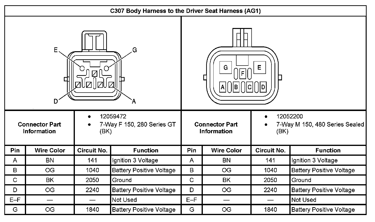 C307 Body Harness to the Driver Seat Harness (With RPO Code AG1):