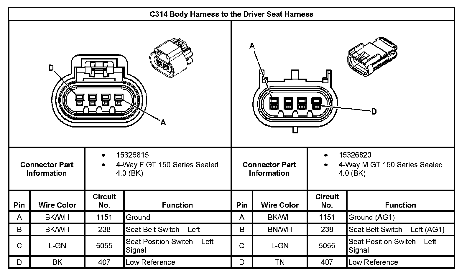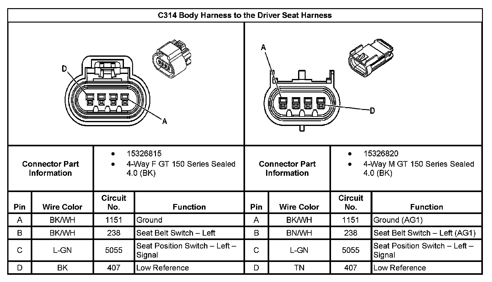 C314 Body Harness to the Driver Seat Harness: