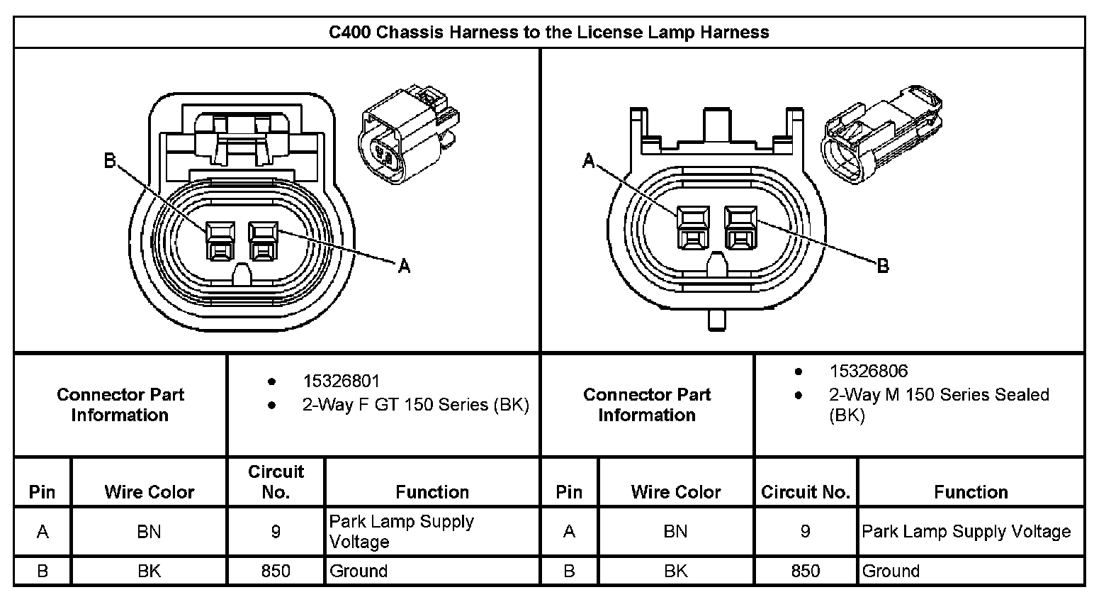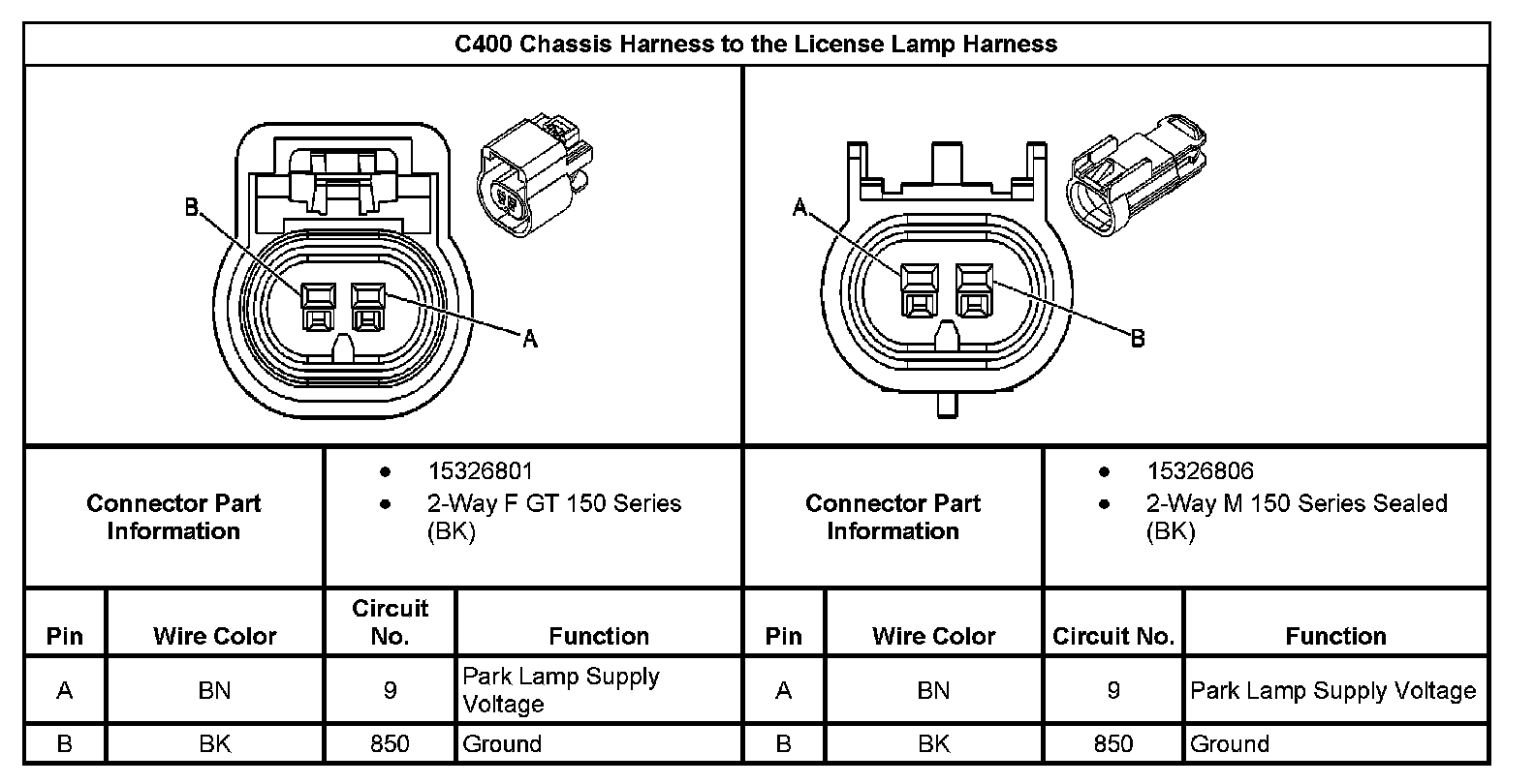 C400 Chassis Harness to the License Lamp Harness:
