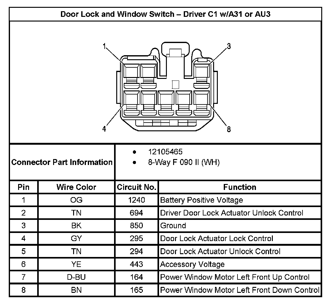 Door Lock and Window Switch - Driver C1 With RPO Code A31 Or AU3: