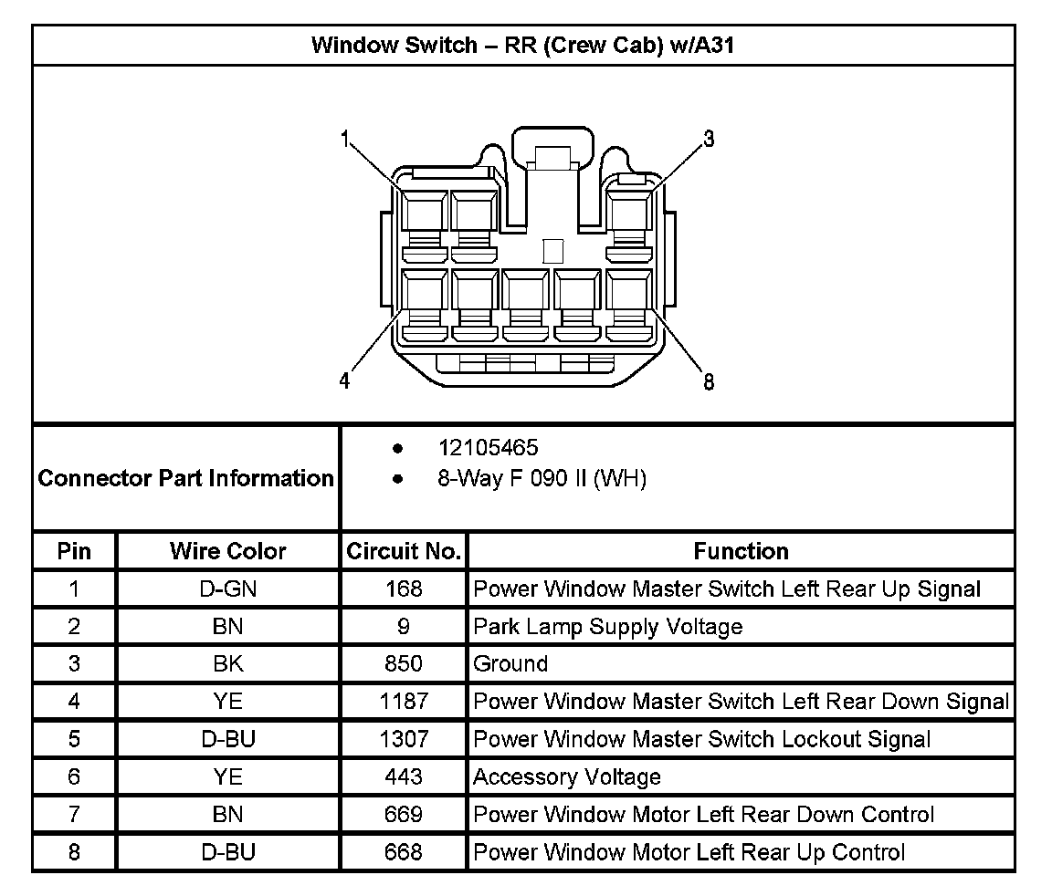 Window Switch - RR (Crew Cab) With RPO Code A31: